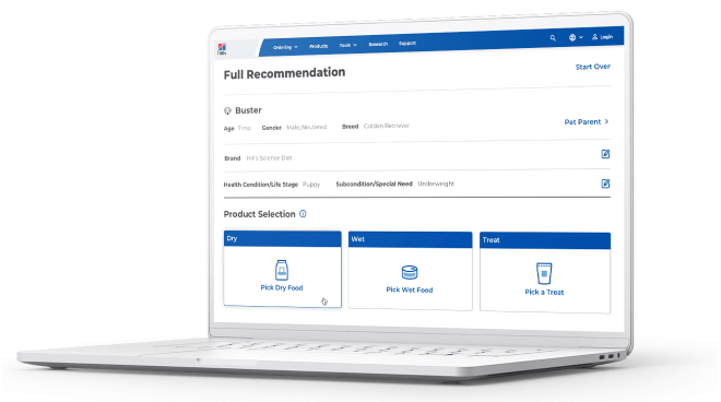 HillVet.com 계정에 등록된 수의사를 위한 추가 제품 정보 및 자료가 제공됩니다.
